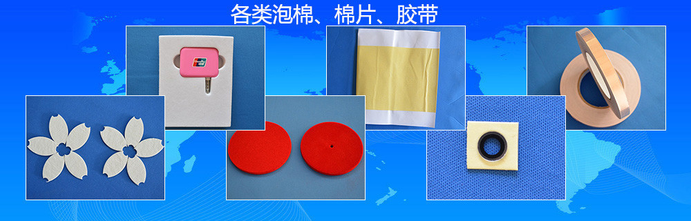 膠貼產(chǎn)品:各類防震膠墊、各種顏色厚度EVA/PE/CR/SBR泡綿、防火泡棉、電子PE、回力膠、海綿、(相機(jī))防漏光海綿、(紅)綠膜雙面泡綿、吸音棉、防塵網(wǎng)、不織布、絨布(紙)、CD門防塵布,(音箱)羊毛氈、(硅)...............